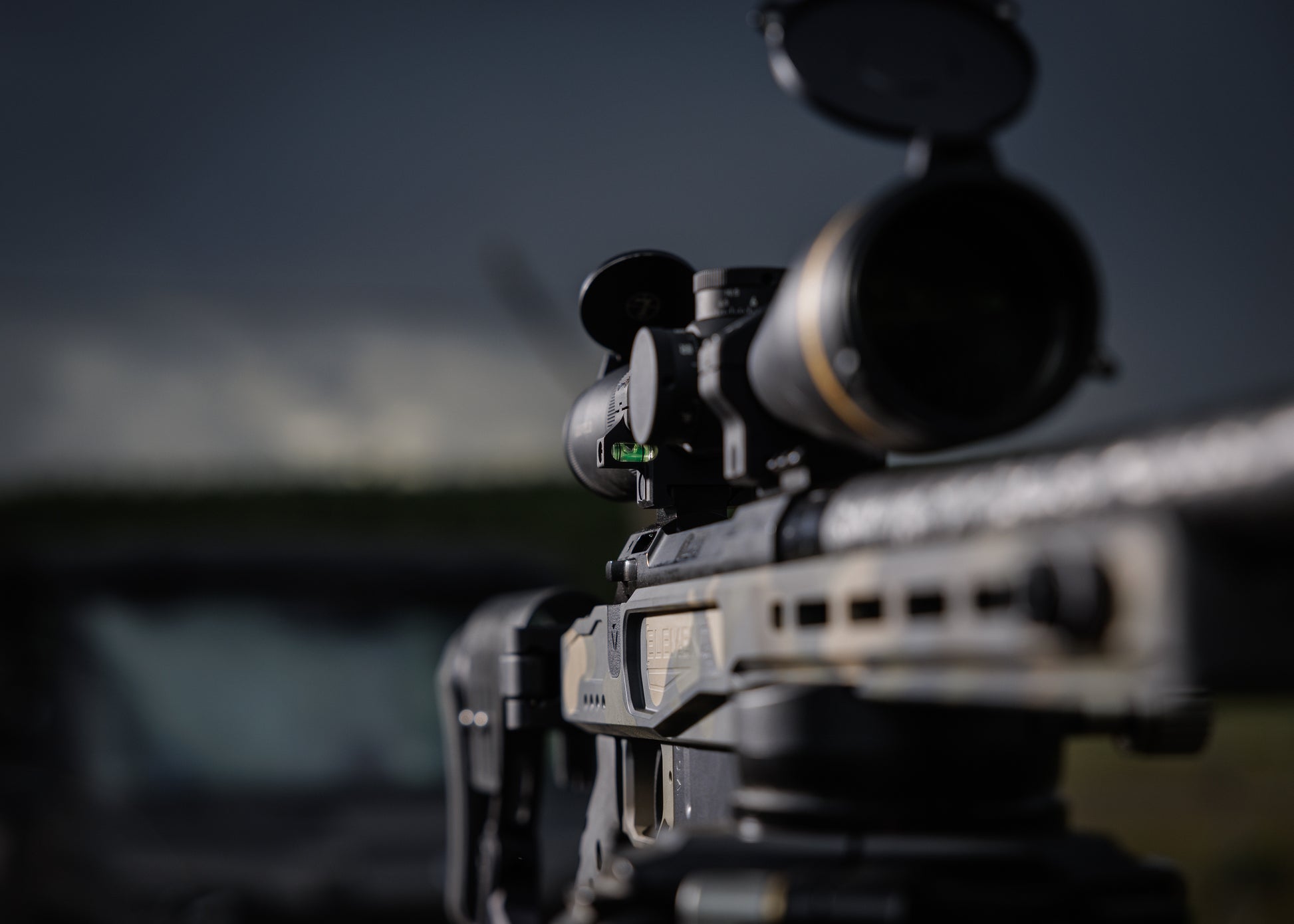 Built in level is visible from the shooting position with the shooters' non-dominant eye for quick reference prior to the shot.
