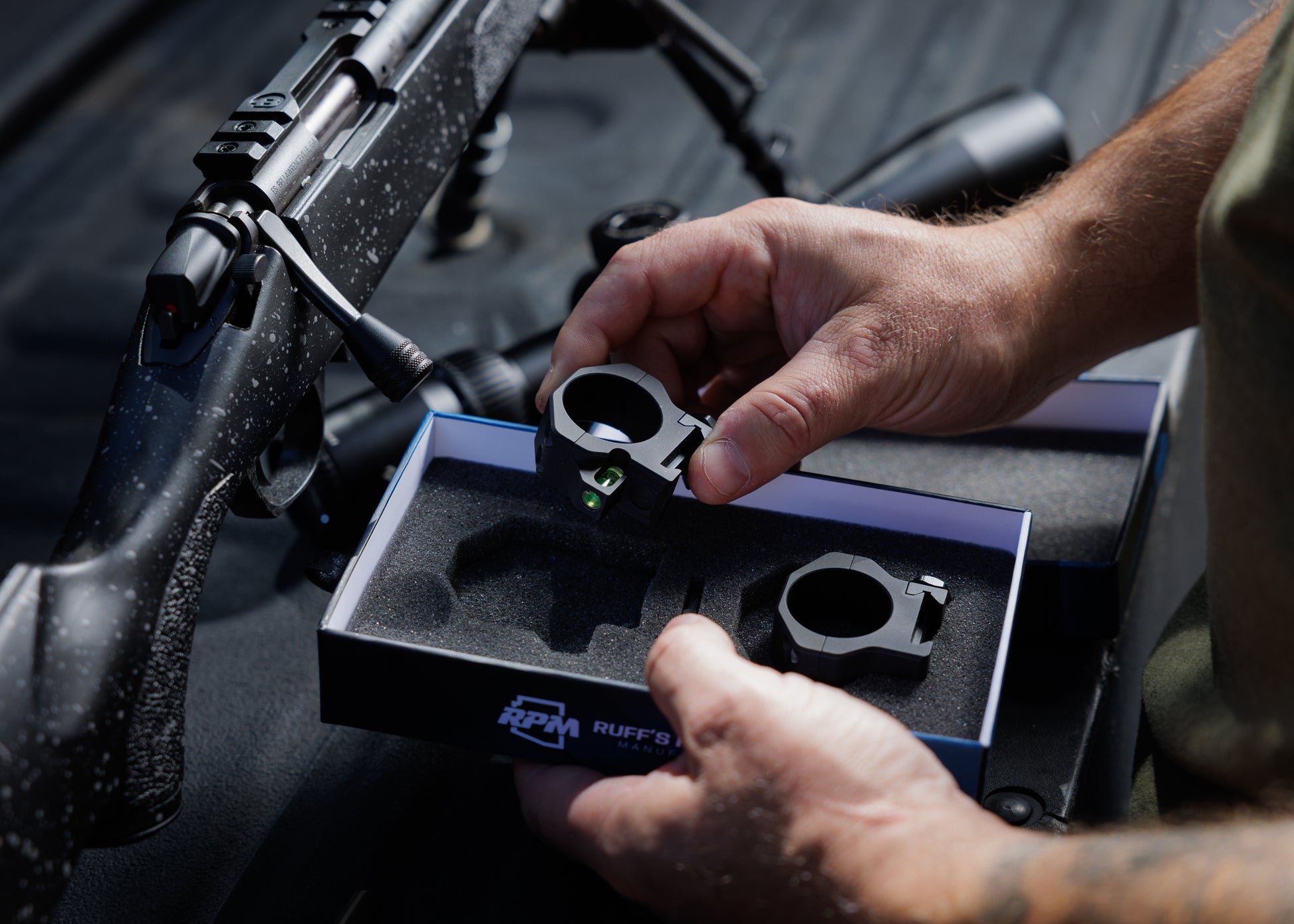 30mm precision riflescope ring set with built in co-linear bubble level.